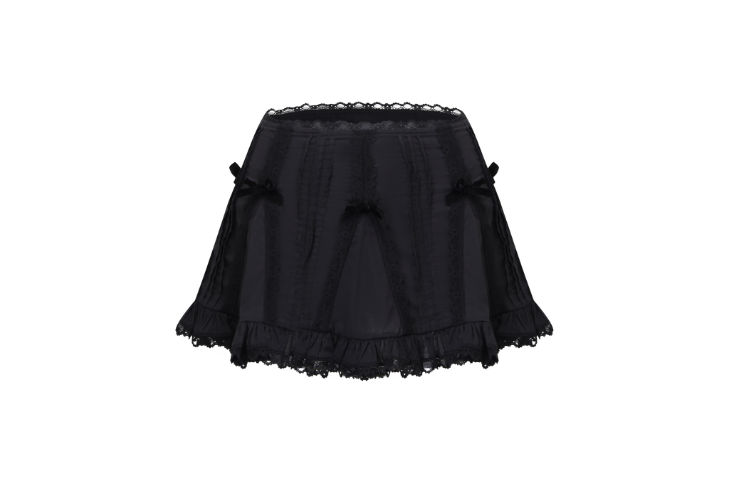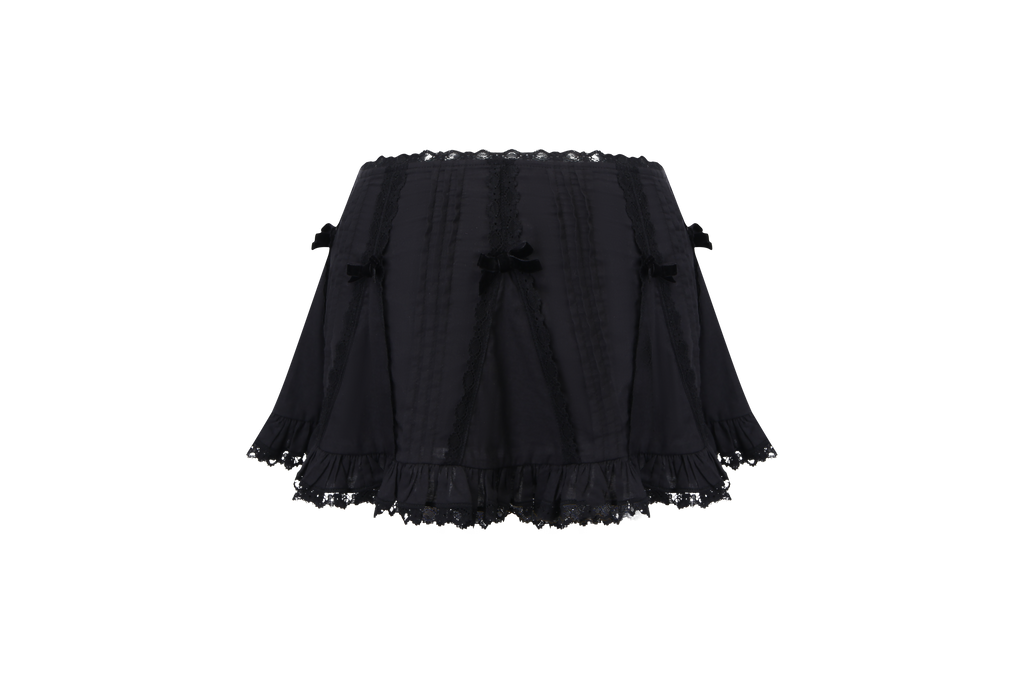 Nodress Black Lace Trim Pleated Cotton Mini Skirt