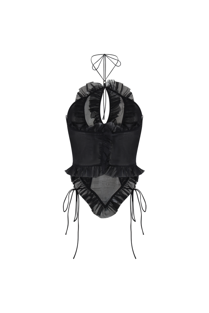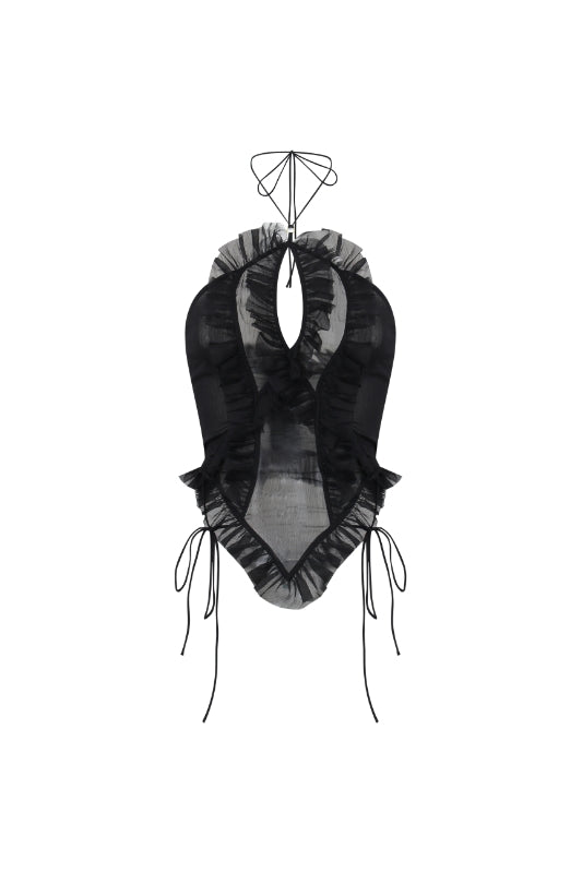 Black sexy ruffled chiffon halterneck camisole