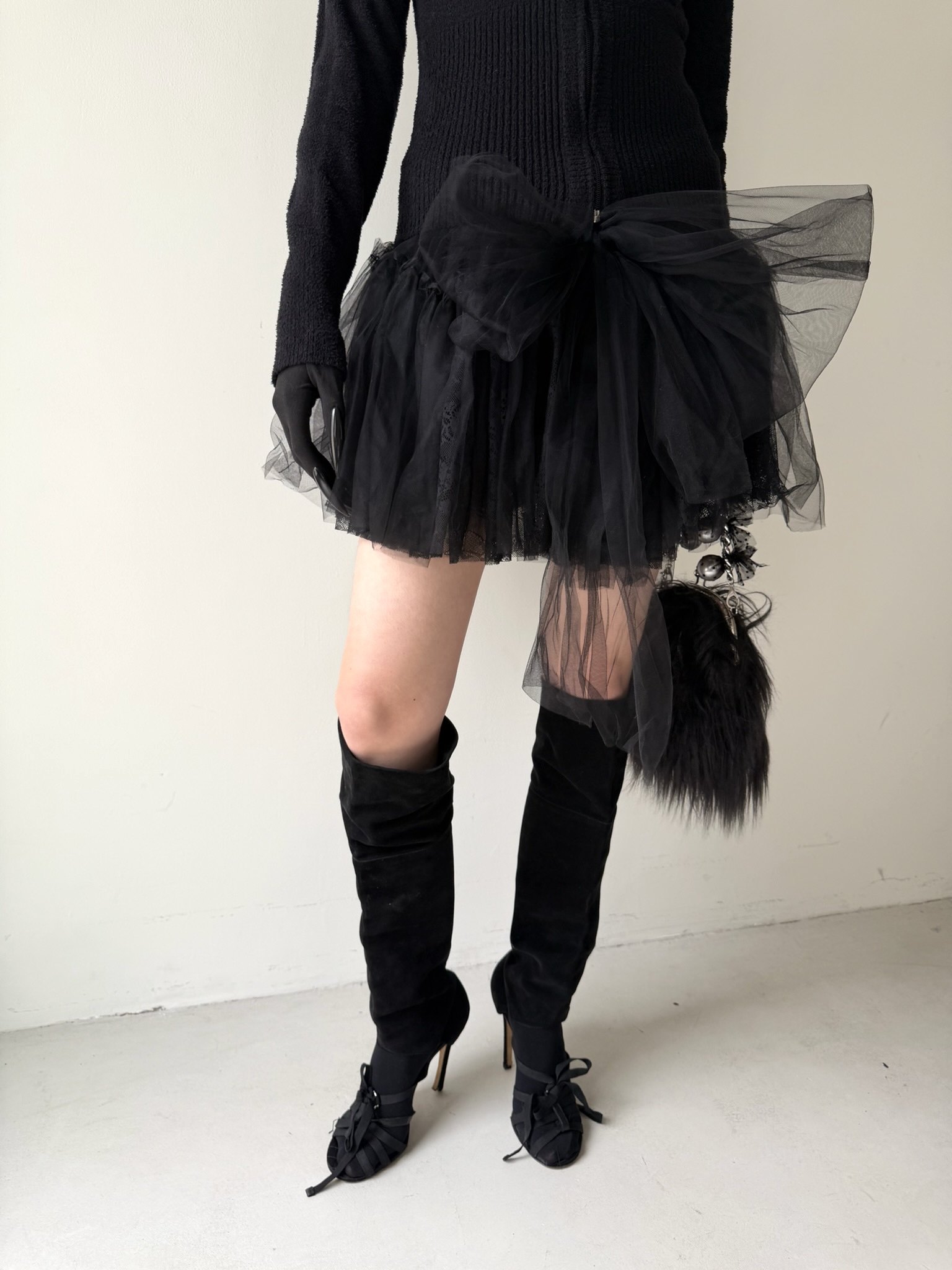 Black Bow Tulle Lace Ballet Skirt