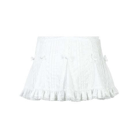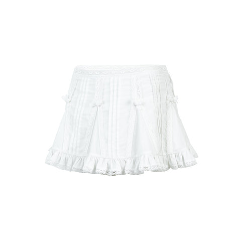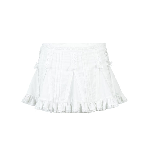Nodress White Lace Trim Cotton Mini Skirt