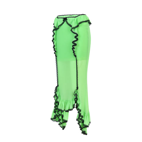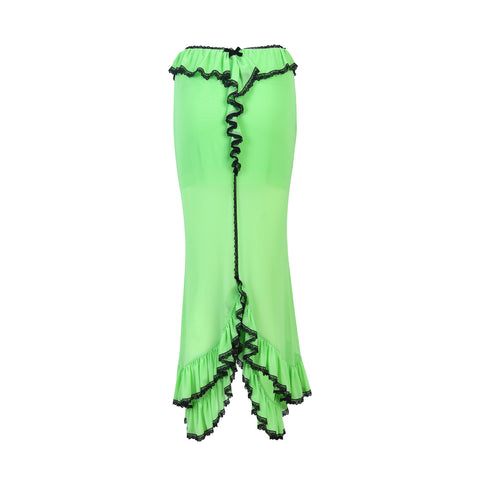 Nodress Lace Trim Fluorescent Green Netting Ruffled Fishtail Skirt