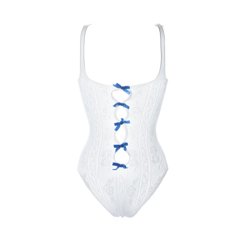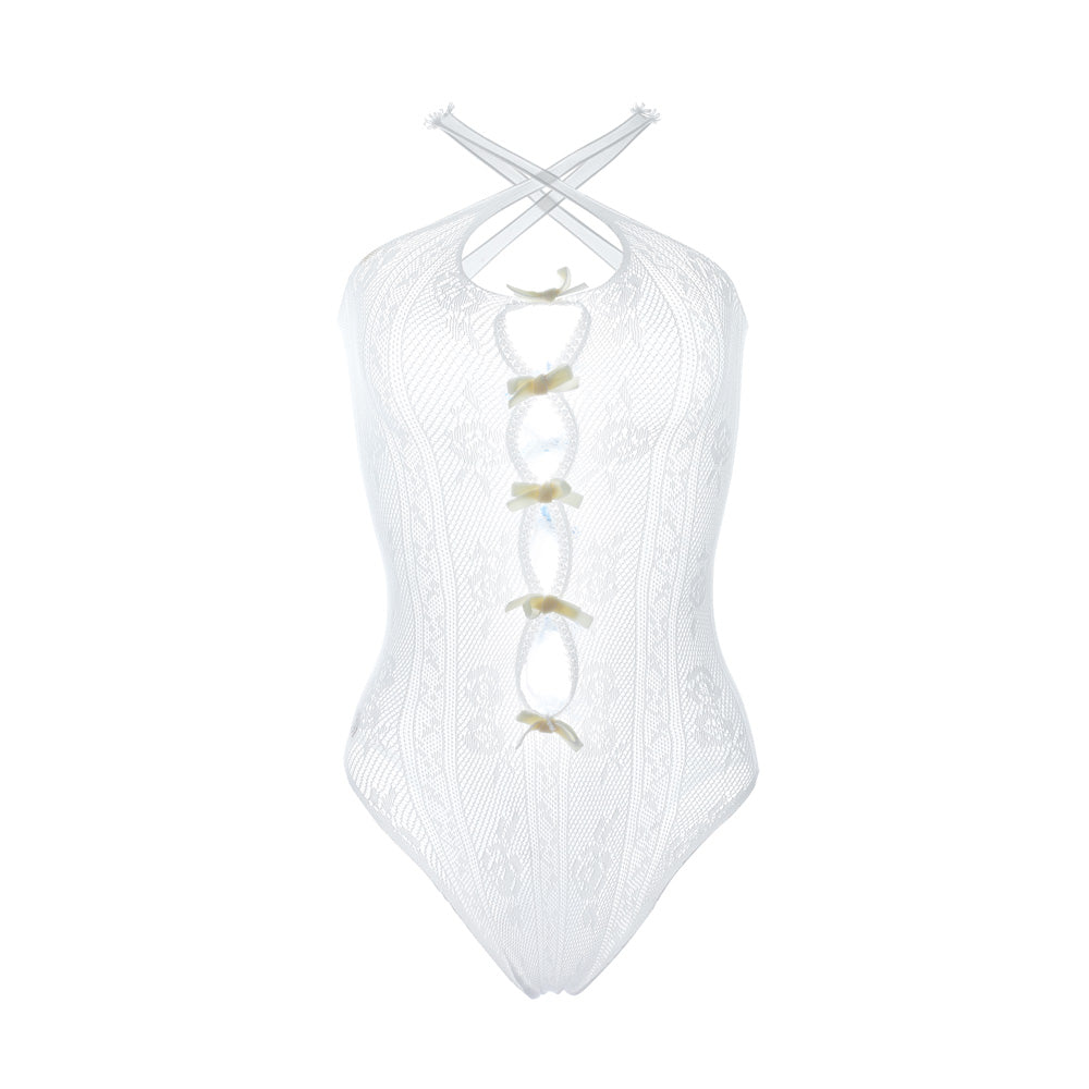 Nodress White Bowknot Lace Bodysuit