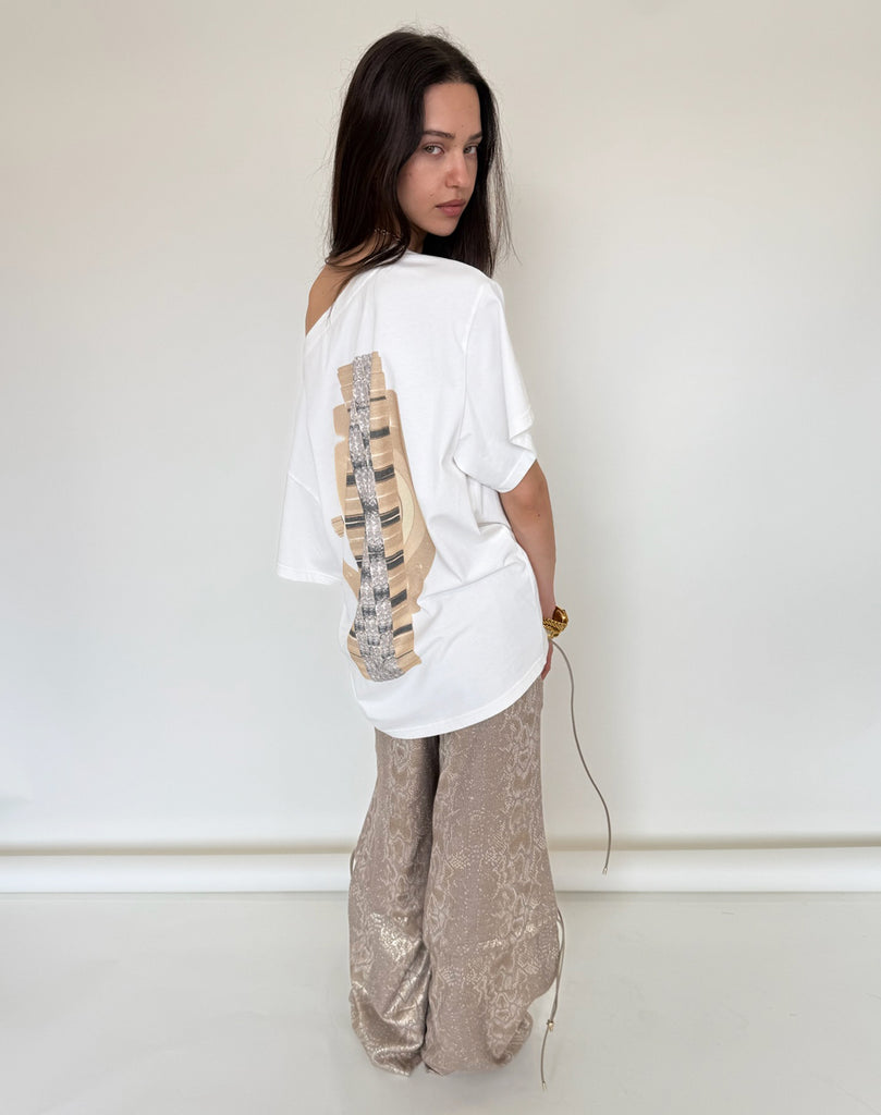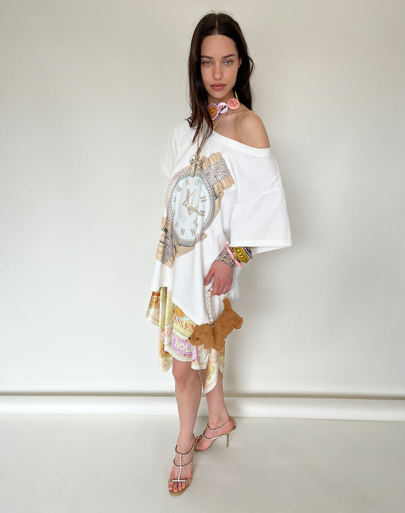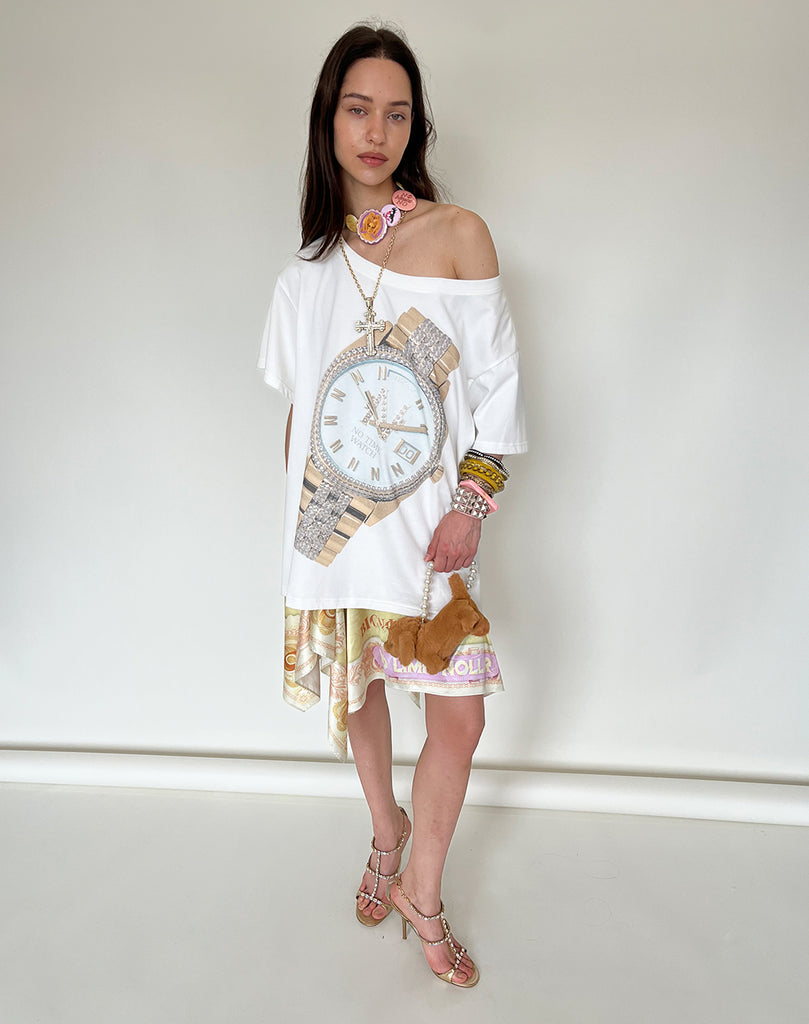 "Notime Watch" Gold Watch Off-Shoulder Loose T-Shirt