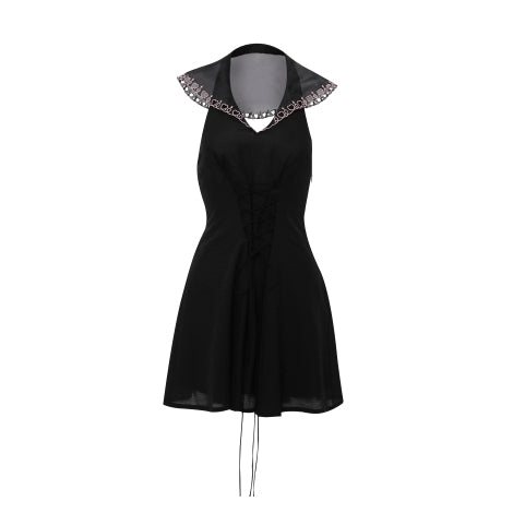 50%Off Black Embroidery Sailor Collar Dress