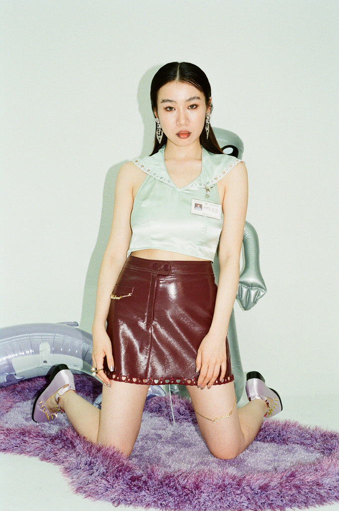 50%Off Brown Embroidered Hollowed Leather Skirt