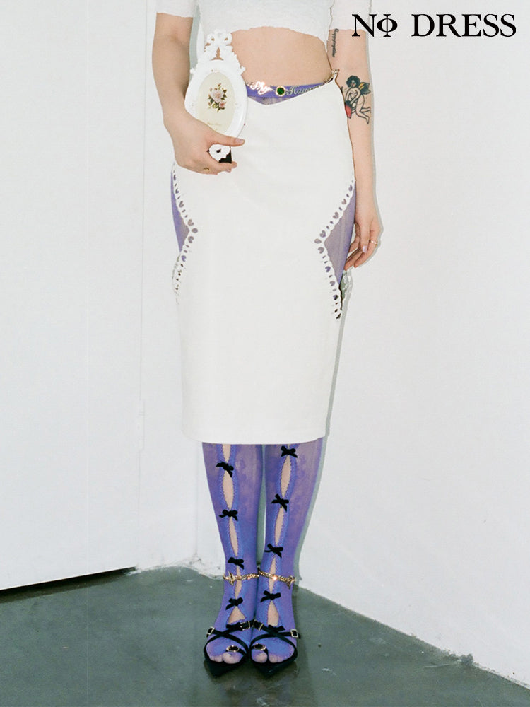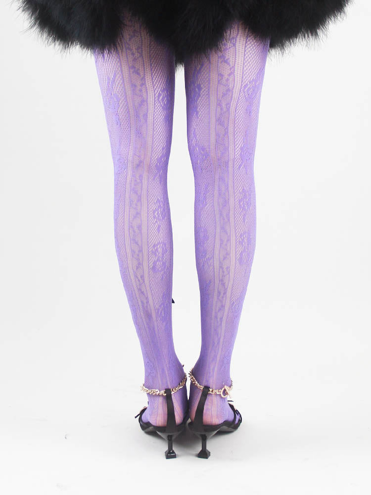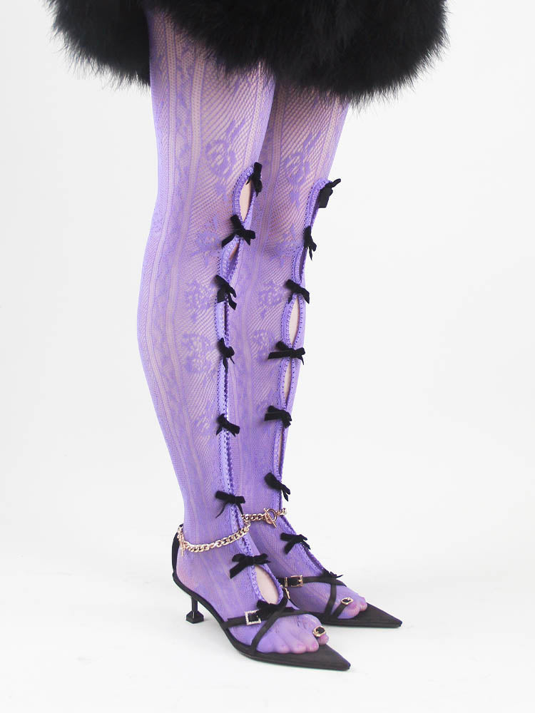 Black Bowknot Purple Fishnet Stockings