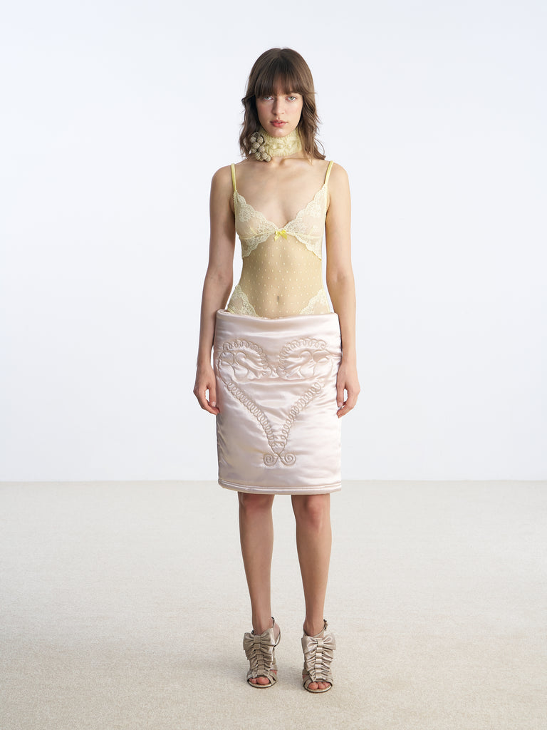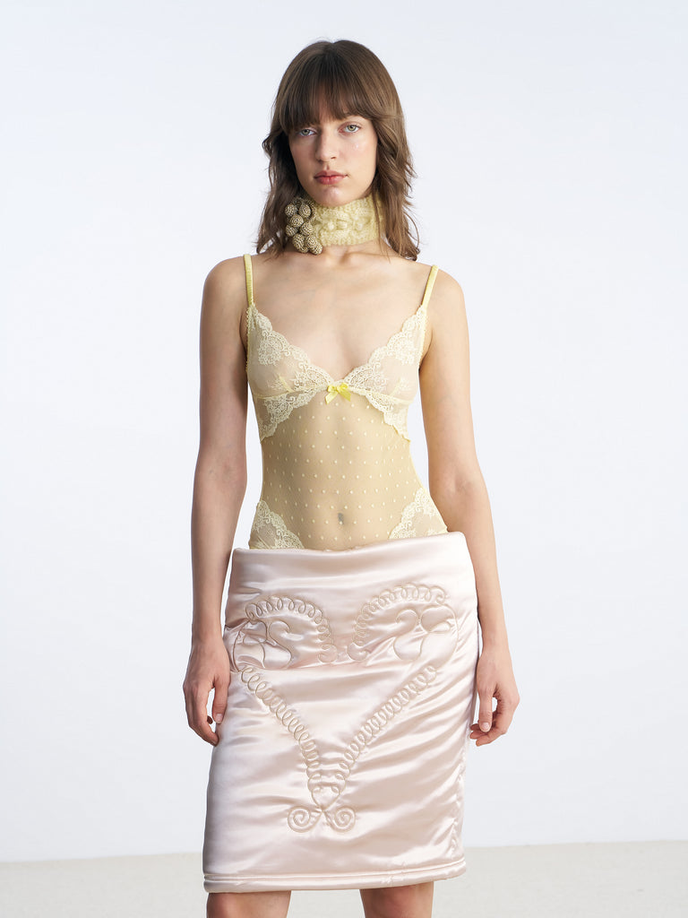 Nφdress X RoomSERVICE888 Apricot RS Heart Vine Embroidered Puffer Skirt