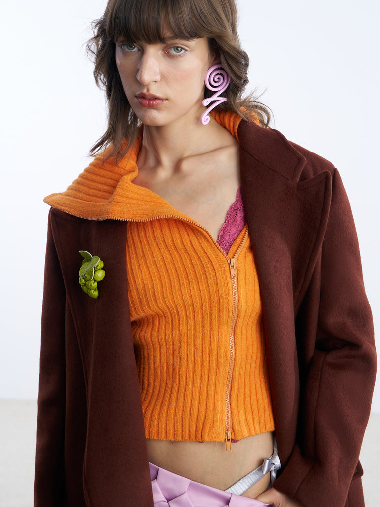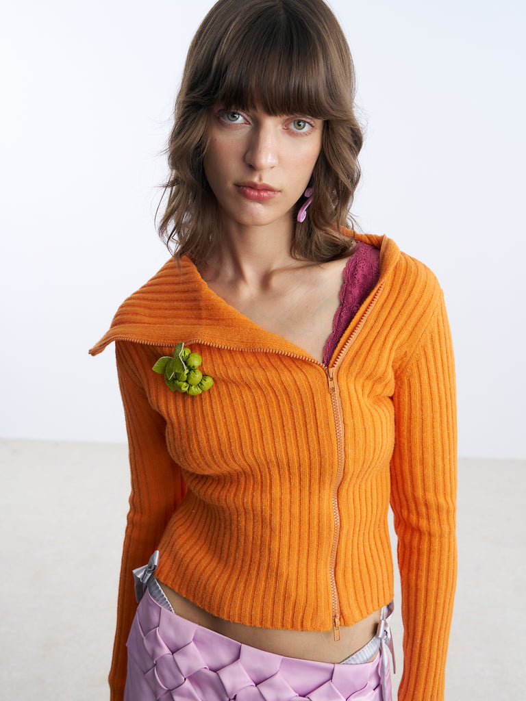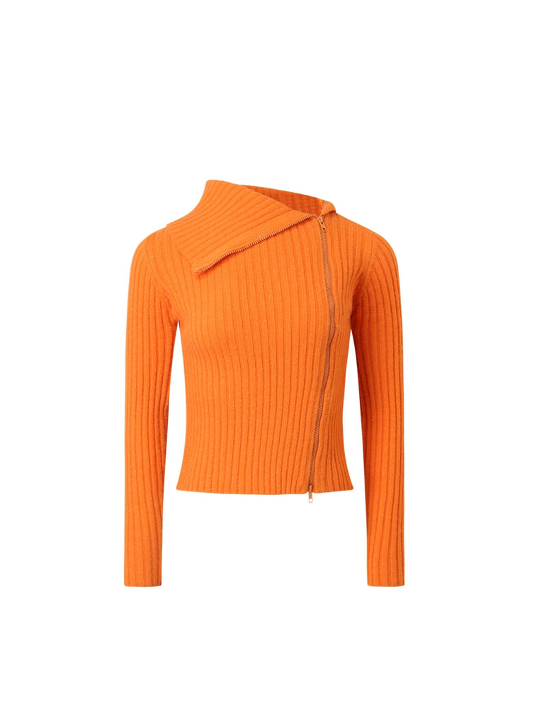 Nφdress X RoomSERVICE888 Orange Roll-Neck Ribbed-Knit Wool-Blend Cardigan