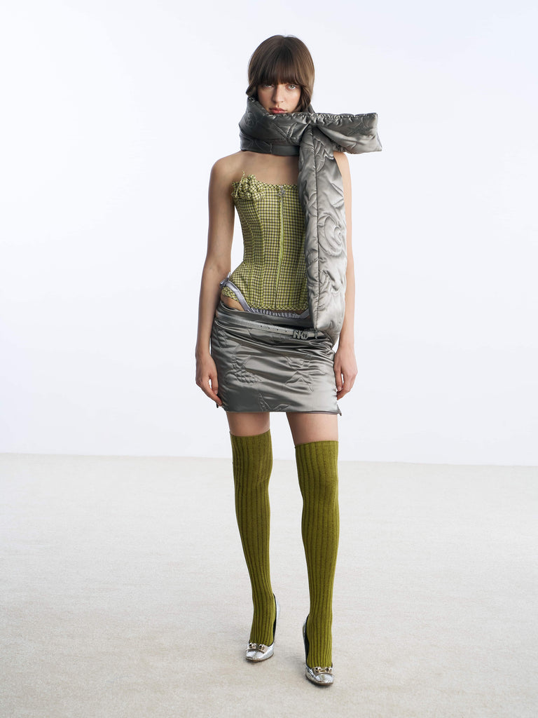 Nφdress X RoomSERVICE888 Yellow-Green Check Corset